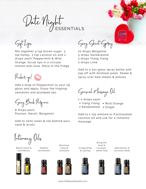 You can use the aroma of different essential oils to arouse the senses and create a romantic environment. Some of the more popular aphrodisiac scents are Bergamot, Black Pepper, Cinnamon, Ginger, Grapefruit, and Ylang Ylang. If you want to read a study on The Power of Aroma check it out, but don't forget to come back to snag your recipes.