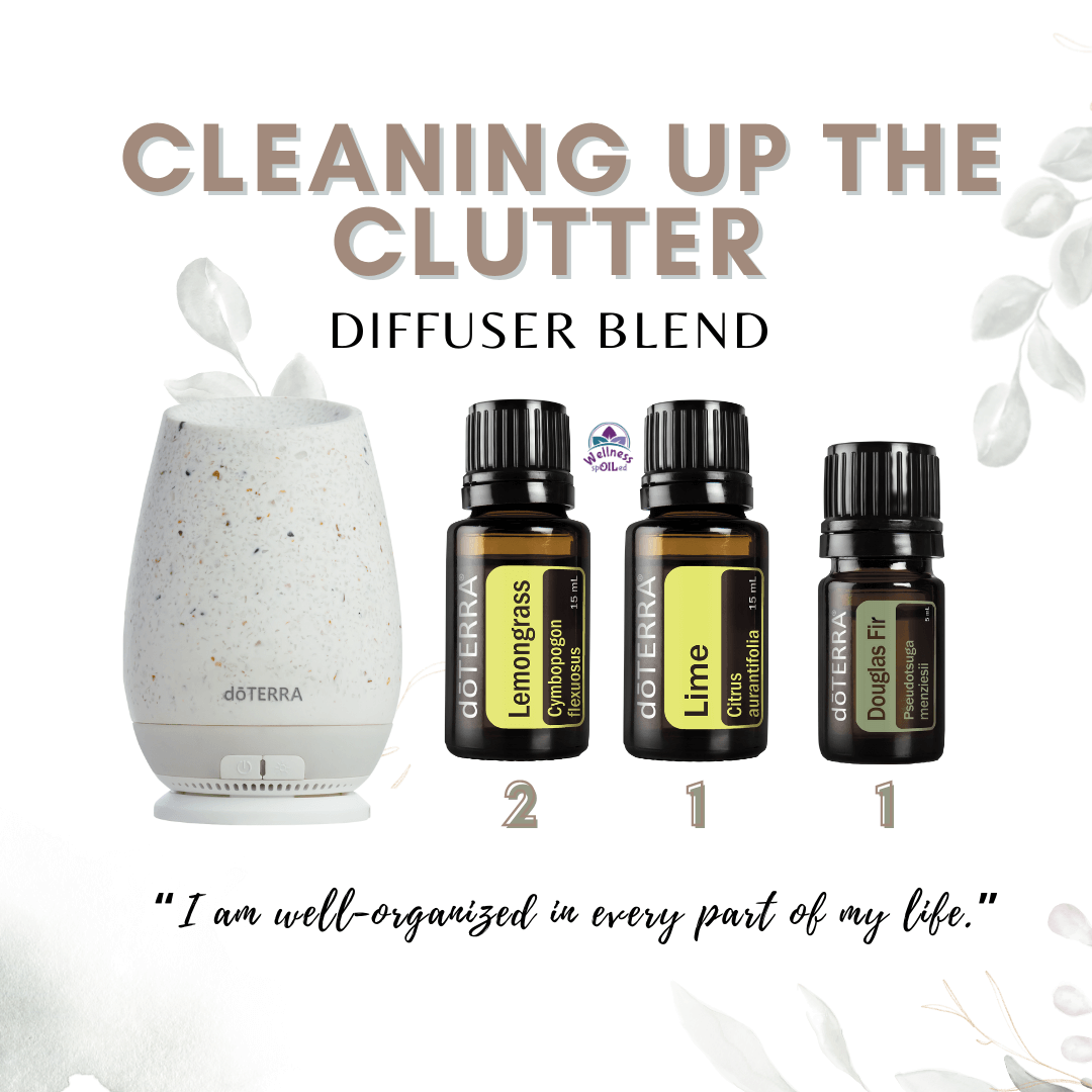 Essential oils have many benefits. One of those benefits is the power of their aroma. Each essential oil has chemical properties that make it good for one thing or another, including emotional benefits. Here's is a essential oil diffuser blend specifically crafted to help you clean up the clutter - both in motivating the physical action of cleaning up your clutter as well as supporting you in decluttering the mind.