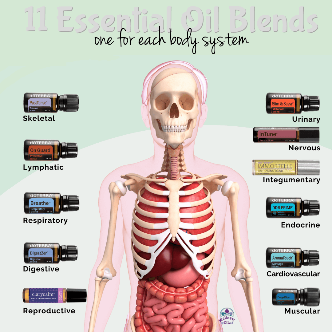Here's a recap of the eleven major body systems and a bonus doTERRA oil blend that you can use to support that system.