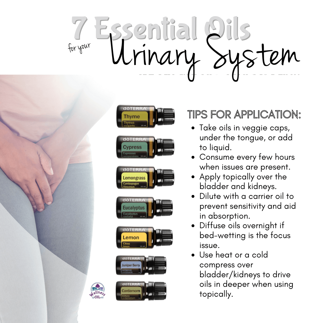 Urinary System – consists of the kidneys, ureters, bladder, and urethra. It eliminates waste from the body, regulates our blood pH, and controls electrolytes and metabolites. Essential oils support the urinary system by helping to flush impurities, gently detoxing the kidneys and ensuring that we’re getting the most we can out of the food we eat.