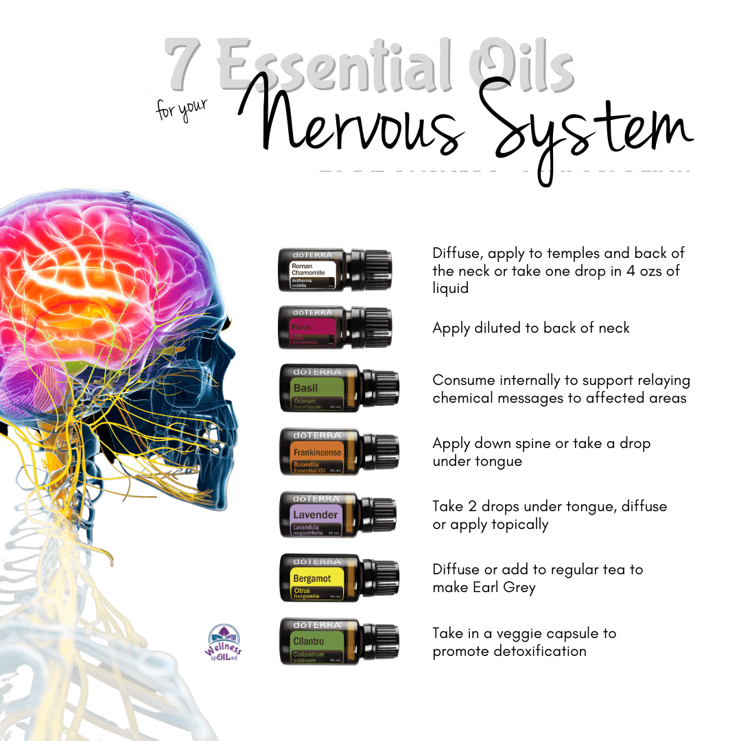 Nervous System – consists of a network of nerve cells and fibers that control the body’s internal environment by sending signals all throughout the body. This is what allows us to think, feel, process sensory information, and control our voluntary movements. The nervous system also helps regulate body temperature, is our memory recall and the mode in which we learn, and is responsible for our emotions. Using essential oils can benefit our nervous system tremendously by helping to bring our body into homeostasis, basically ensuring everything is “firing” properly - doing exactly what it’s supposed to do. They help calm the body, generate a positive mood, and even help neurons be more efficient while transmitting and receiving messages.