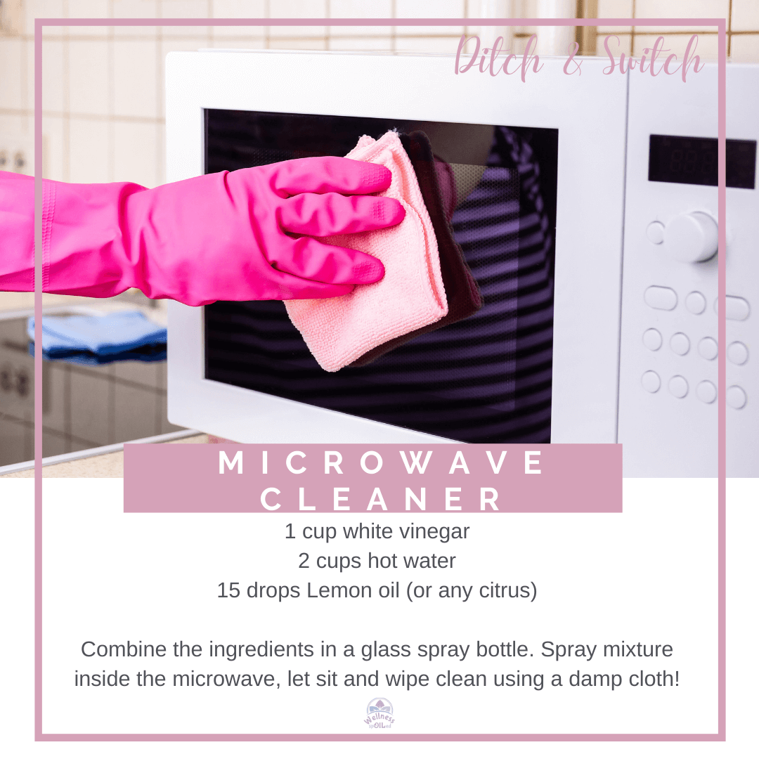 Combine the ingredients in a glass spray bottle. Spray mixture inside the microwave, let sit for a few minutes, then wipe clean using a damp cloth.