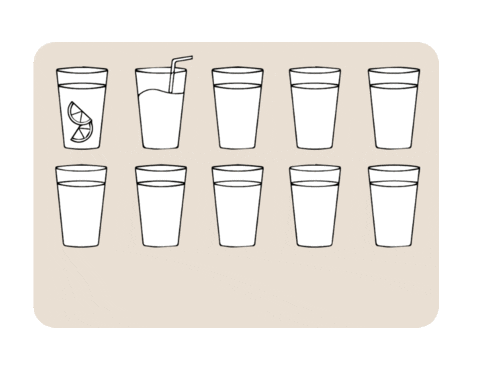 reusable water bottle with marked measurements to monitor your progress. I, of course, would recommend a glass or stainless-steel container – they’re healthier options, but especially important if you’re planning to use essential oils in your water. Aim for at least half your body weight (lbs.) in ounces and adjust based on your activity level and climate. For example, if you weigh 140lbs, you’ll want to drink at least 70oz of water each day.