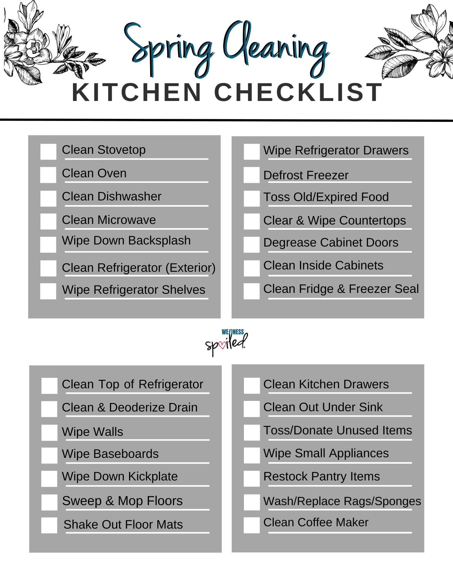 Spring is a time of renewal and fresh starts that a lot of times leads to cleaning. Spring cleaning is a way to make sure that the home is ready for the warmer months and declutter the winter accumulations. The average amount of time spent in a kitchen is over 2 hours and 15 minutes per day and that doesn’t even account for eat-in kitchens. That’s why I thought I’d highlight kitchen spring cleaning specifically. Cleaning the kitchen will not only help keep your kitchen fresh and organized, but it also helps to keep you and your family healthy. A messy kitchen can be a breeding ground for germs and bacteria, which can cause food poisoning and other illnesses.