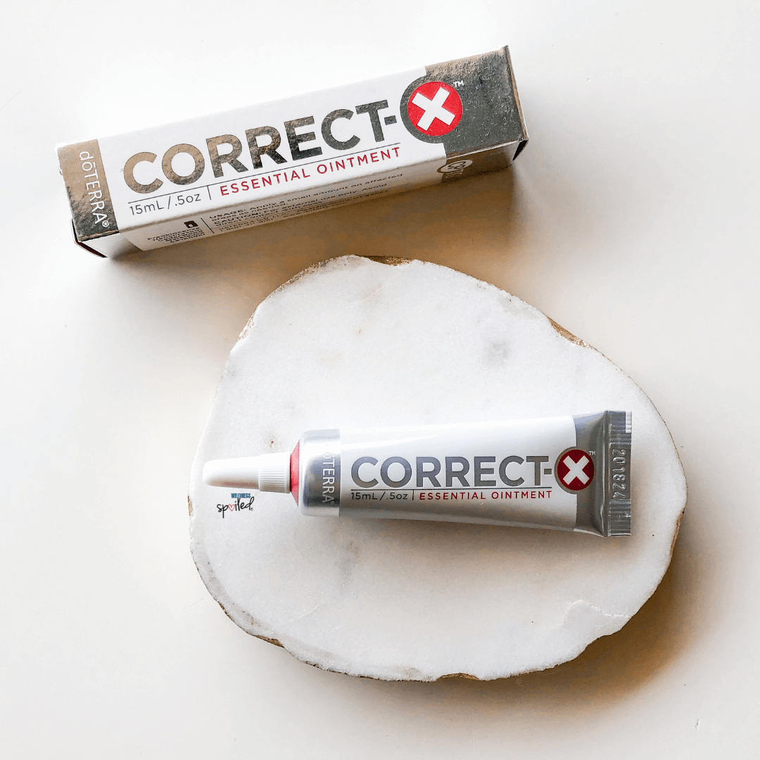 Correct-X®: This multipurpose ointment helps soothe the skin and enhances its natural return to a healthy state after being distressed. It includes Frankincense, Helichrysum, Tea Tree, Cedarwood, and Lavender essential oils known for assisting with soothing skin irritations. Correct-X provides a moisture barrier that protects and hydrates the skin. It’s petroleum- and preservative-free that absorbs quickly and is gentle and nonirritating, making it ideal for sensitive skin.