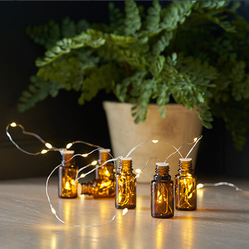 Essential Oil Bottle Chandelier: Collect used doTERRA bottles of various sizes and colors. String them together with fairy lights to create a unique and eco-friendly chandelier for your home.
